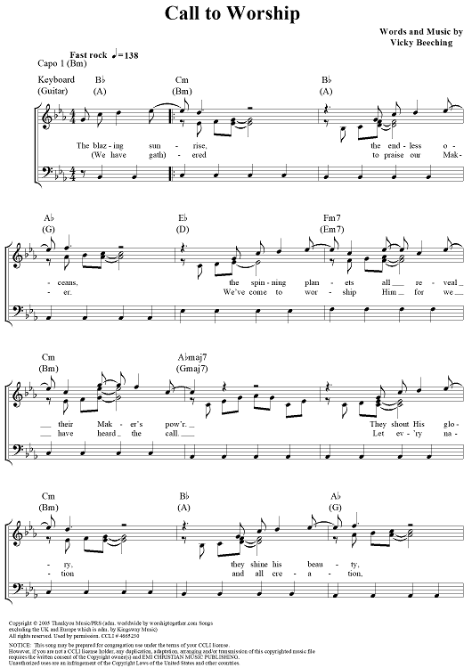 Digital Sheet Music for Call to Worship by Vicky Beeching scored for Piano/Vocal/Chords; id:319920