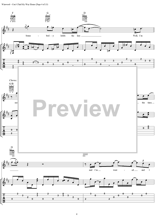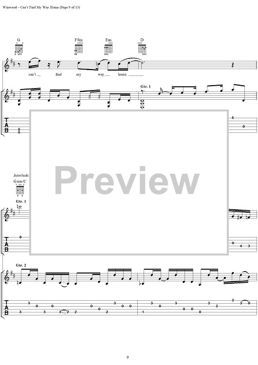 "Can't Find My Way Home" Sheet Music by Steve Winwood