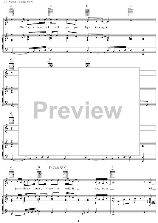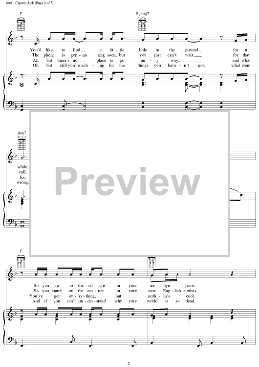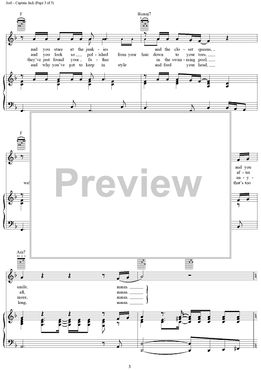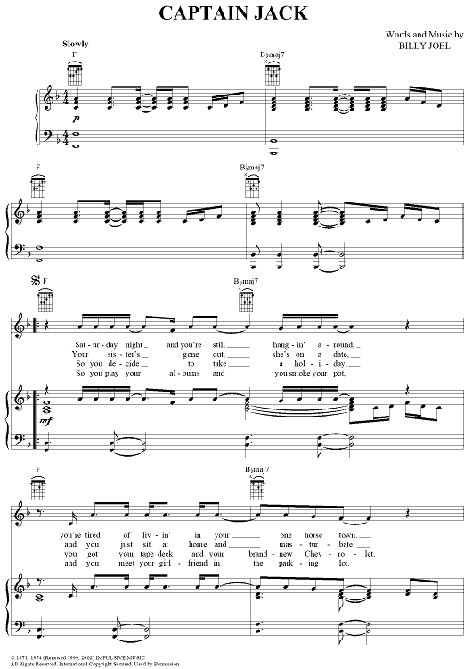 Digital Sheet Music for Captain Jack by Billy Joel scored for Piano/Vocal/Chords; id:403208