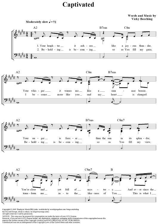 Digital Sheet Music for Captivated by Vicky Beeching scored for Piano/Vocal/Chords; id:360934
