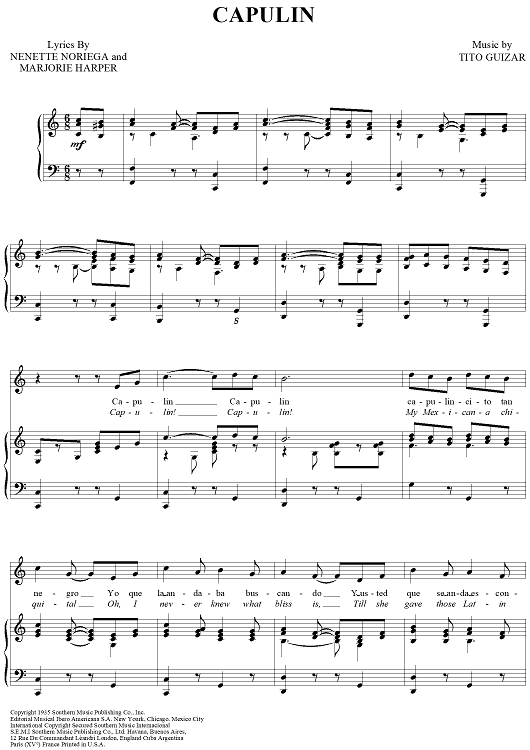Digital Sheet Music for Capulin by Tito Guizar, Nenette Noriega, Marjorie Harper scored for Piano/Vocal/Chords; id:422803