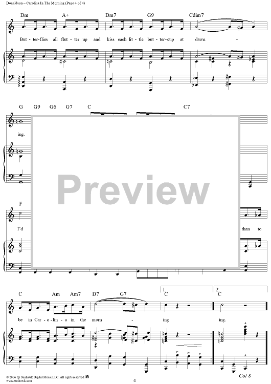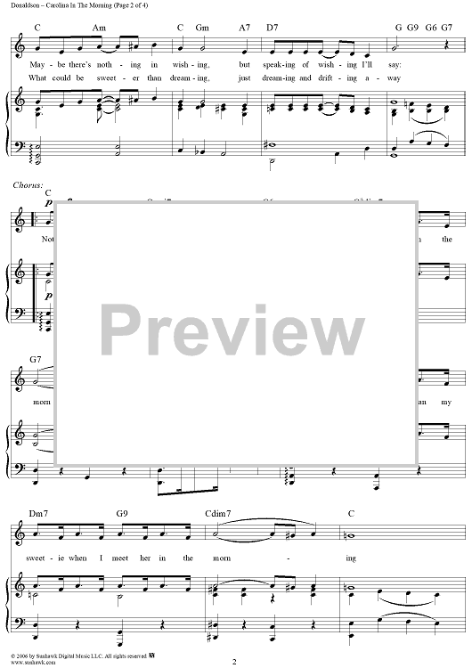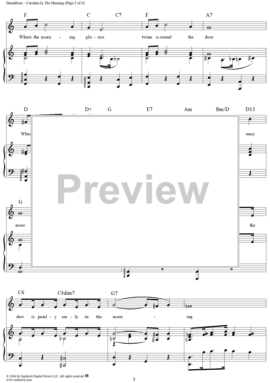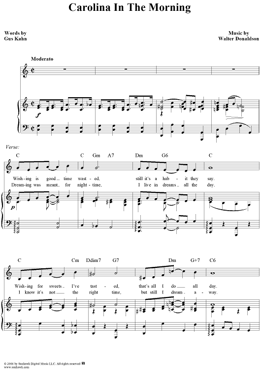 Digital Sheet Music for Carolina in the Morning by Gus Kahn, Walter Donaldson scored for Piano/Vocal/Chords; id:320660