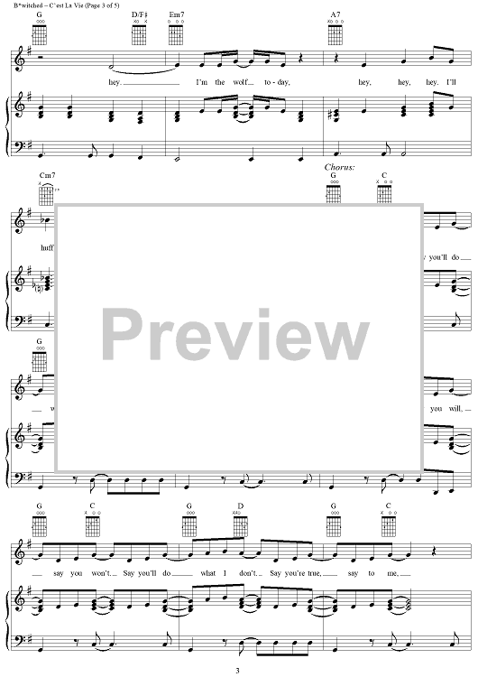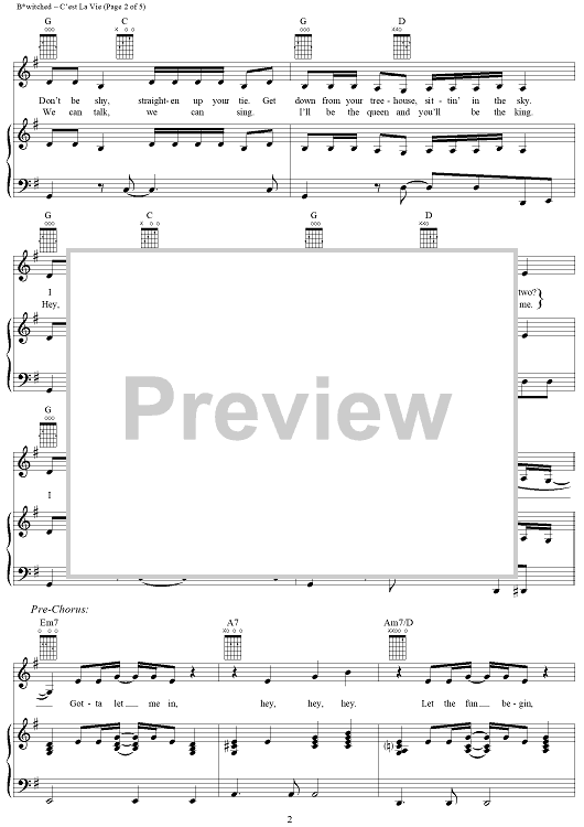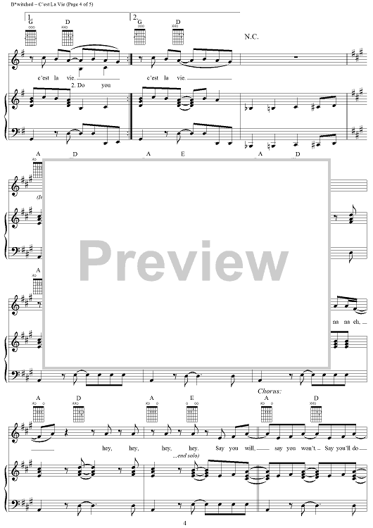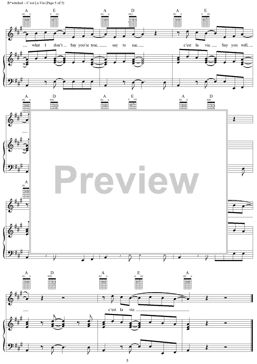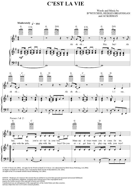 Digital Sheet Music for C'est la Vie by Hedges Brannigan, B*Witched, Tracy Ackerman scored for Piano/Vocal/Chords; id:115864