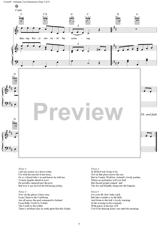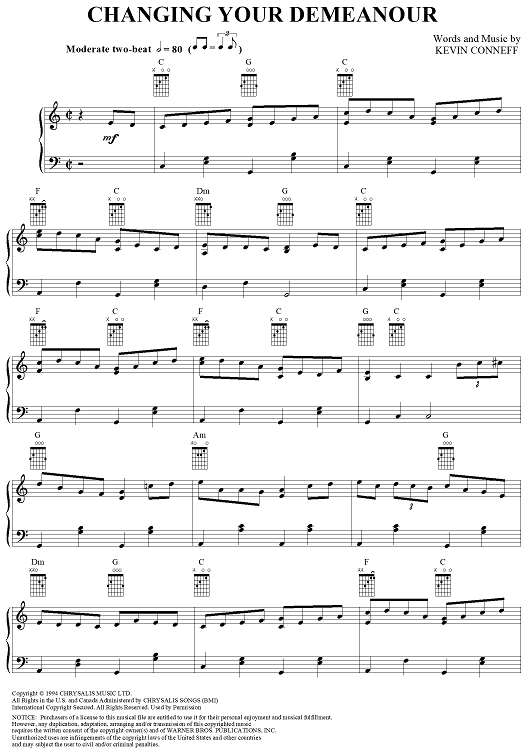 Digital Sheet Music for Changing Your Demeanour by The Chieftains, Kevin Conneff scored for Piano/Vocal/Chords; id:272431