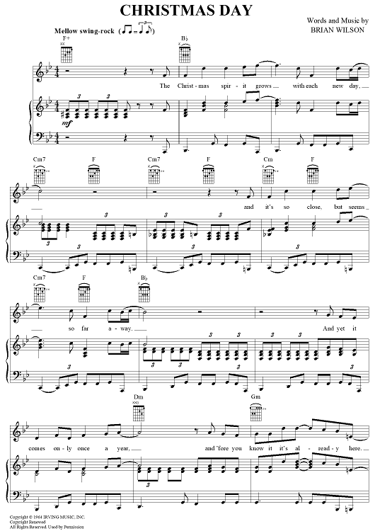 Digital Sheet Music for Christmas Day by Brian Wilson, The Beach Boys scored for Piano/Vocal/Chords; id:366908