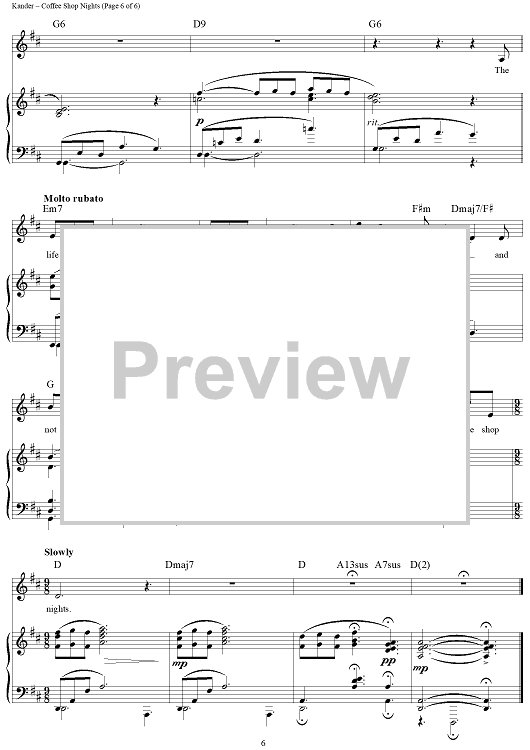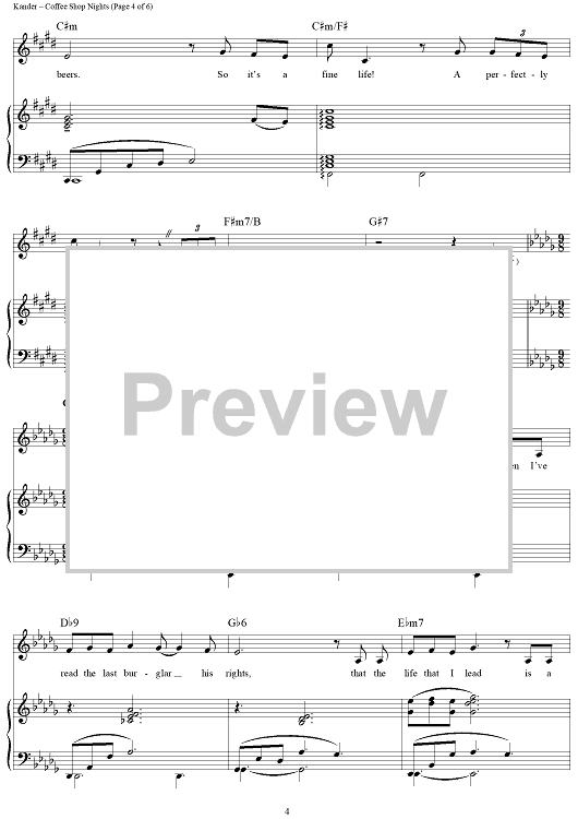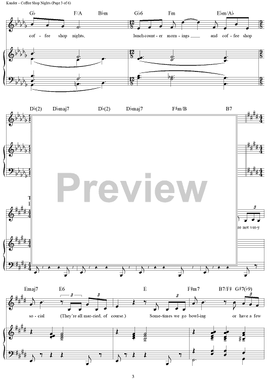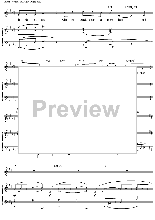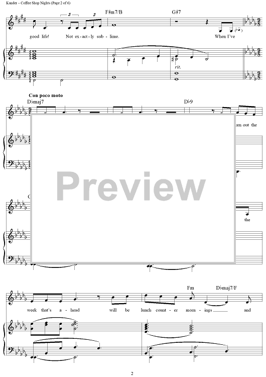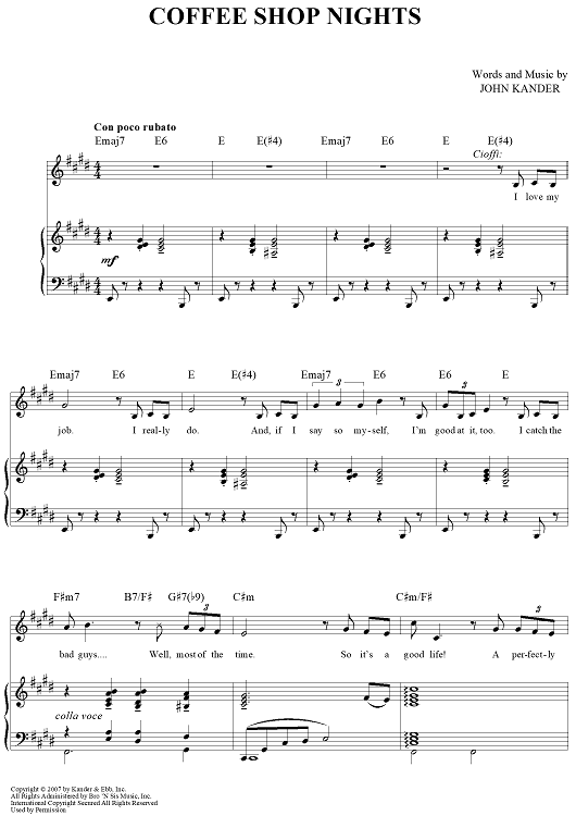 Digital Sheet Music for Coffee Shop Nights by John Kander scored for Piano/Vocal/Chords; id:450410