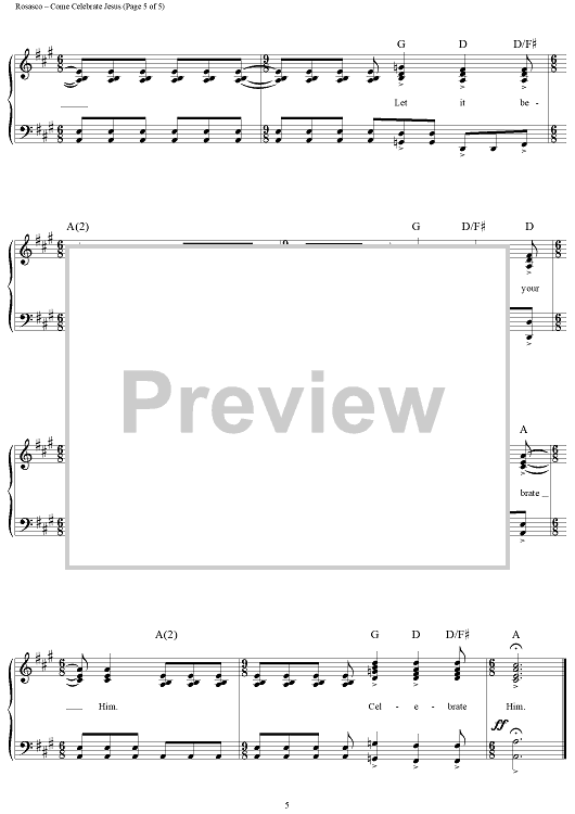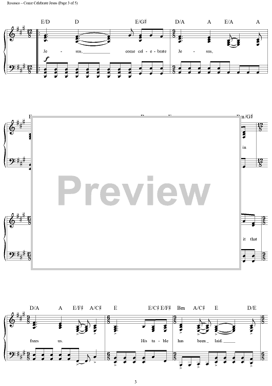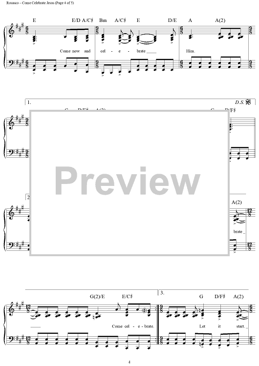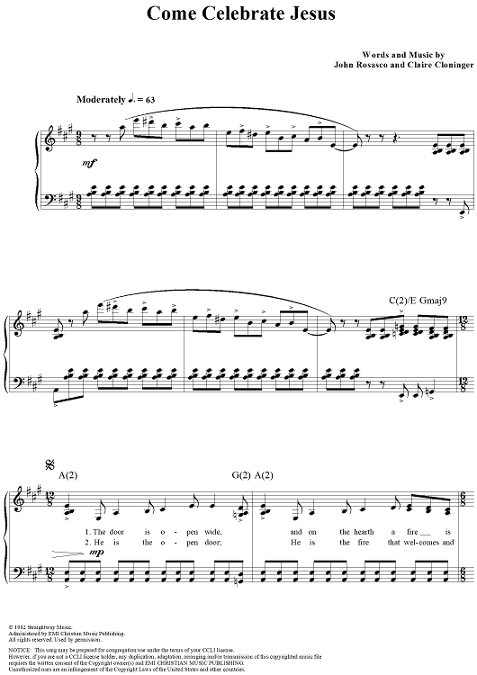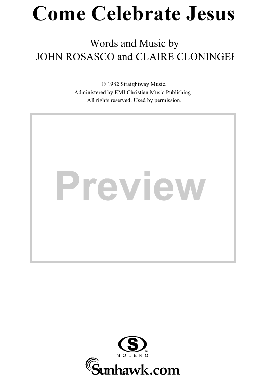 Digital Sheet Music for Come Celebrate Jesus by John Rosasco, Claire Cloninger scored for Piano/Vocal/Chords; id:119349
