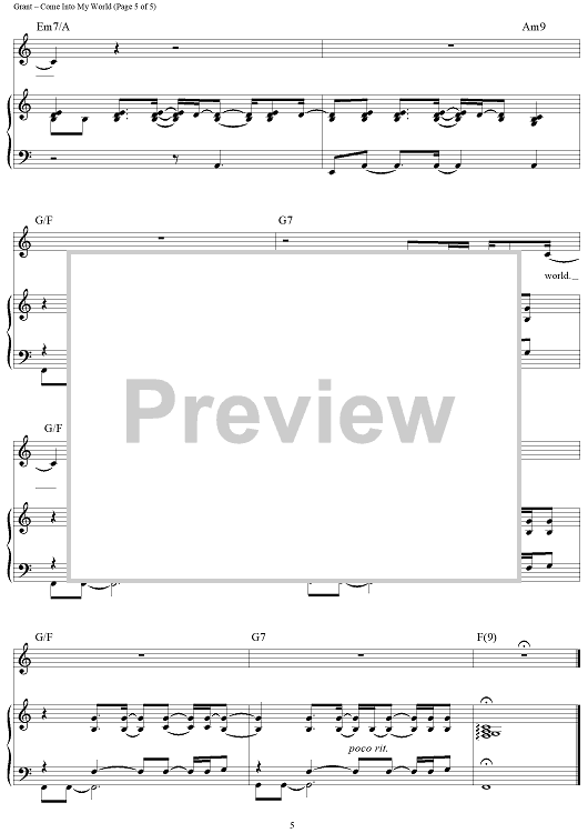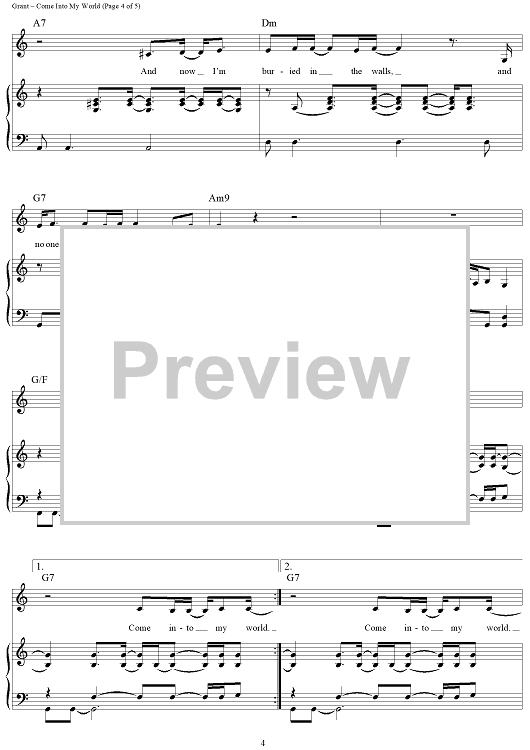 Digital Sheet Music for Come Into My World by Amy Grant scored for Piano/Vocal/Chords; id:418640