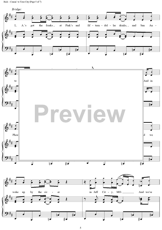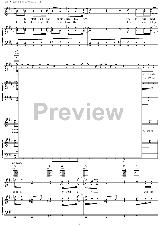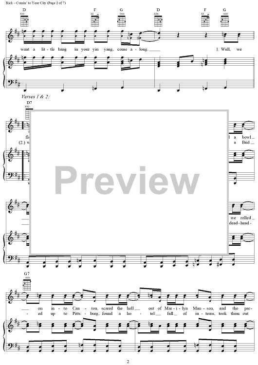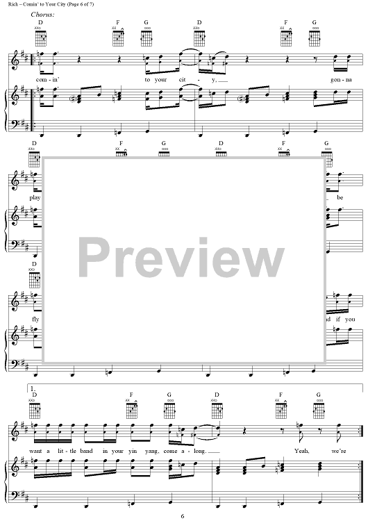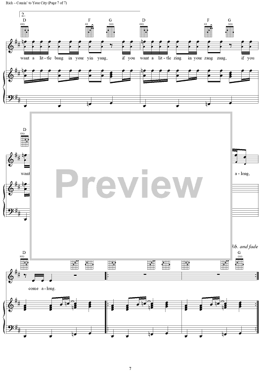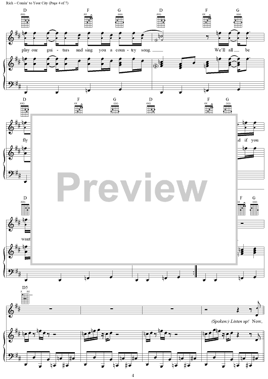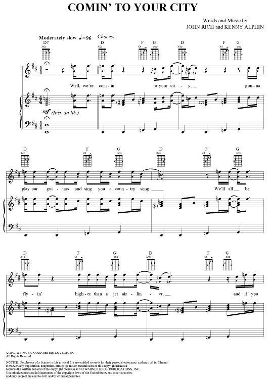 Digital Sheet Music for Comin' to Your City by John Rich, Kenny Alphin, Big & Rich scored for Piano/Vocal/Chords; id:314816