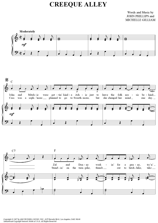 "Creeque Alley" Sheet Music by The Mamas and The Papas