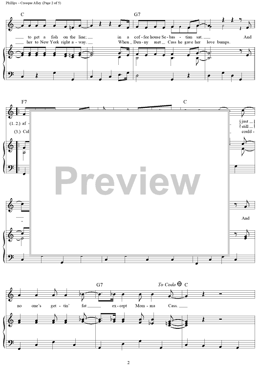Digital Sheet Music for Creeque Alley by The Mamas and The Papas, Michelle Phillips, John Phillips scored for Piano/Vocal/Chords; id:365411