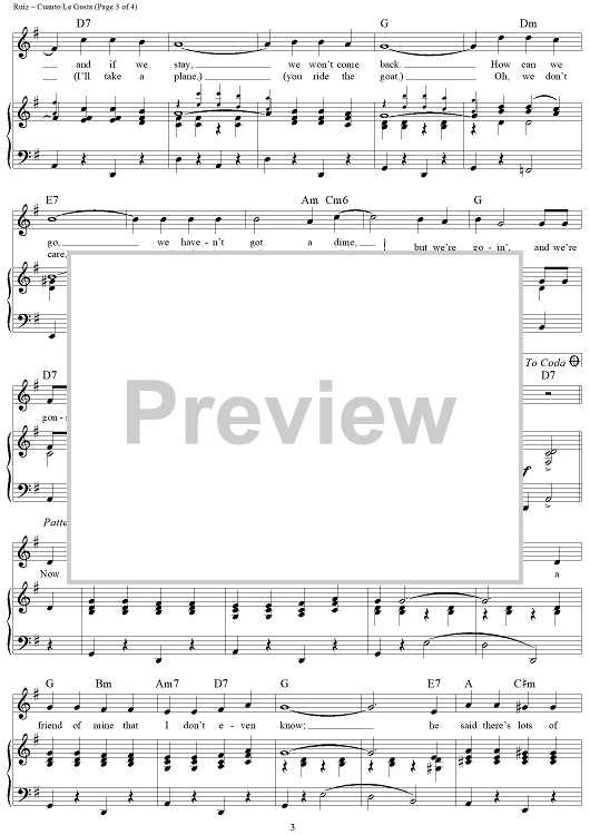 Digital Sheet Music for Cuanto Le Gusta (La Parranda) by Ray Gilbert, Gabriel Ruiz scored for Piano/Vocal/Chords; id:318366