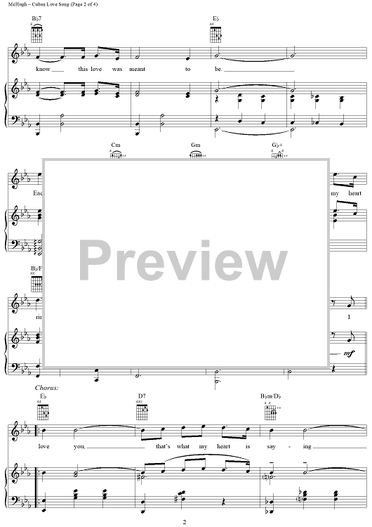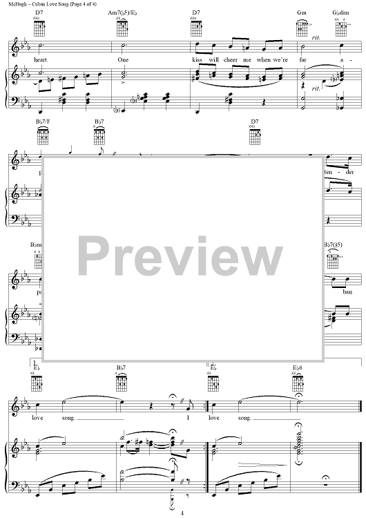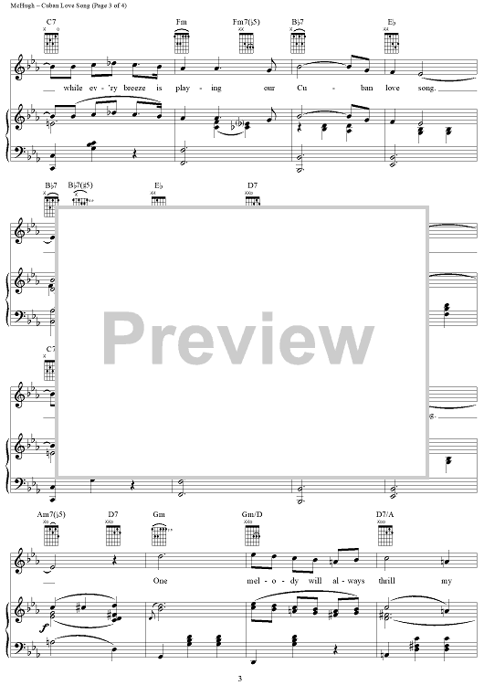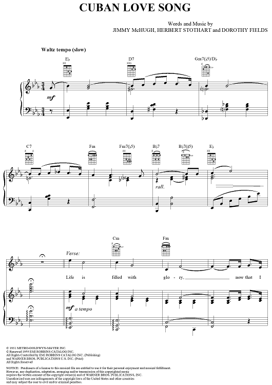 Digital Sheet Music for Cuban Love Song by Dorothy Fields, Jimmy McHugh, Herbert Stothart scored for Piano/Vocal/Chords; id:287359