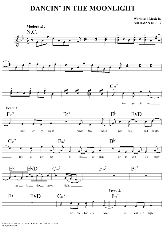 Digital Sheet Music for Dancin' in the Moonlight by Sherman Kelly, King Harvest scored for Lead Sheet; id:120330