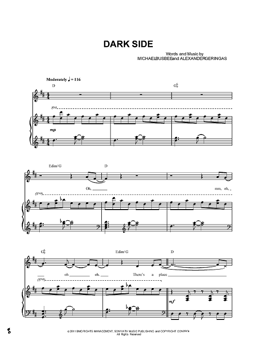 Digital Sheet Music for Dark Side by Busbee, Kelly Clarkson, Alexander Geringas scored for Piano/Vocal/Chords; id:433239