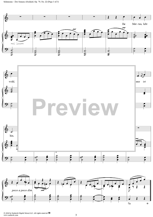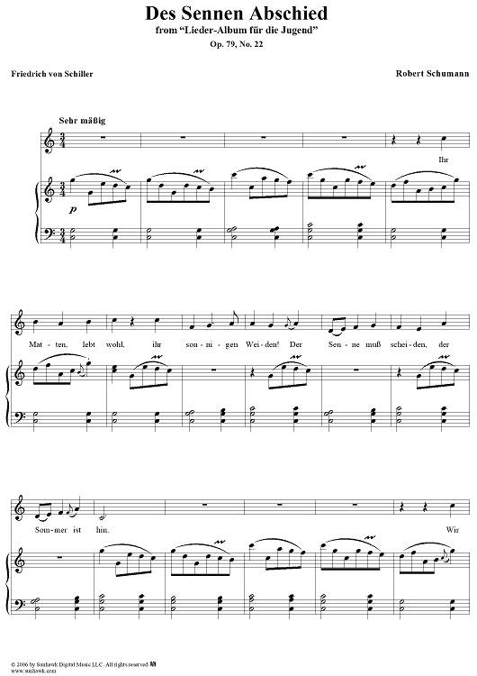 Digital Sheet Music for Des Sennen Abschied, No. 22, Op. 79 by Friedrich Schiller, Robert Schumann scored for Voice/Piano; id:318144