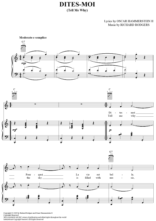 Digital Sheet Music for Dites-Moi (Tell Me Why) by Richard Rodgers, Oscar Hammerstein II scored for Piano/Vocal/Chords; id:367040