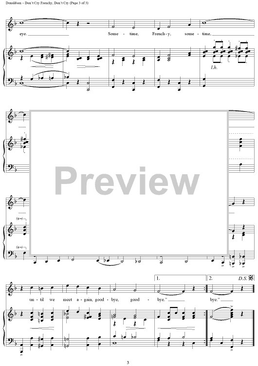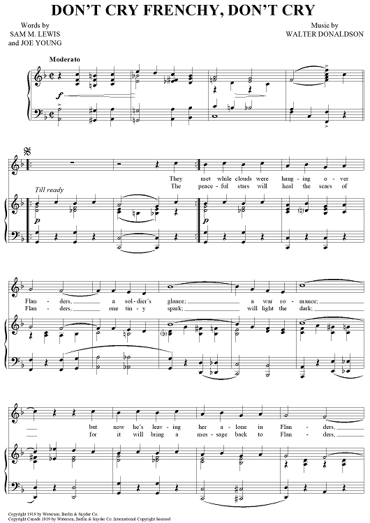 Digital Sheet Music for Don't Cry Frenchy, Don't Cry by Walter Donaldson, Samuel M. Lewis, Joseph Young scored for Piano/Vocal/Chords; id:367005