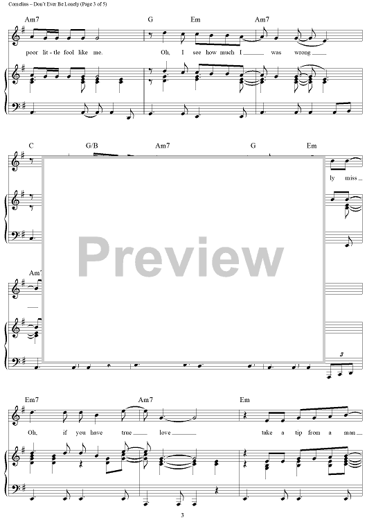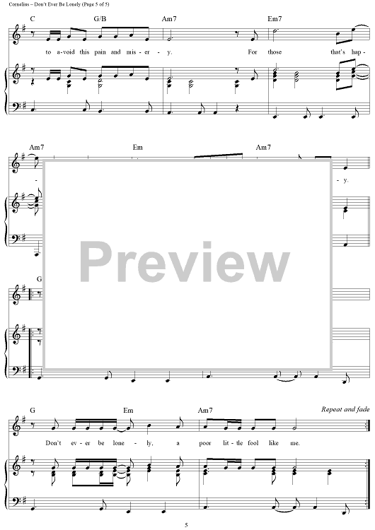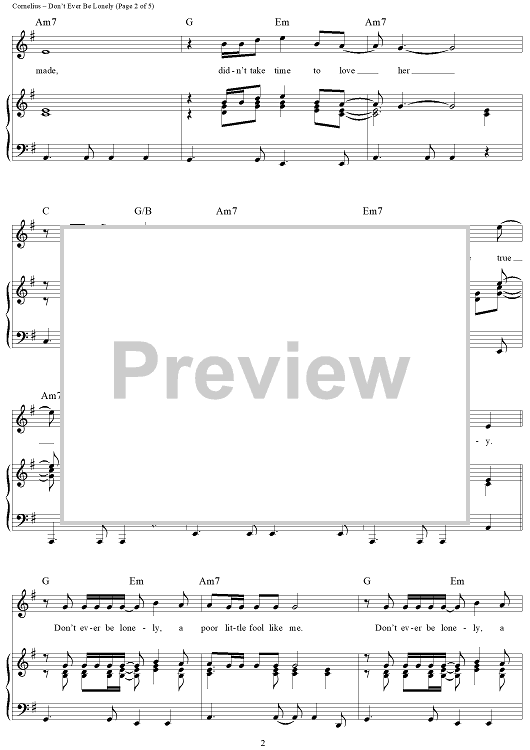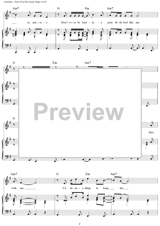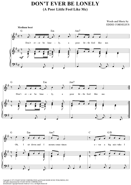 Digital Sheet Music for Don't Ever Be Lonely (A Poor Little Fool Like Me) by Eddie Cornelius, Cornelius Brothers & Sister Rose scored for Piano/Vocal/Chords; id:364017