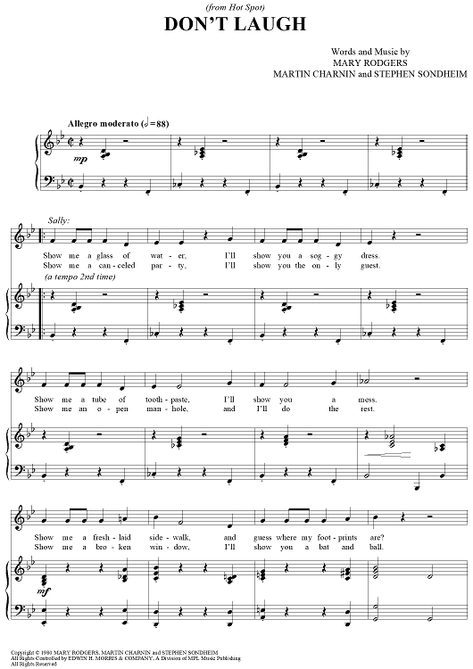 Digital Sheet Music for Don't Laugh - from Hot Spot by Stephen Sondheim, Martin Charnin, Mary Rodgers scored for Piano/Vocal/Chords; id:468973