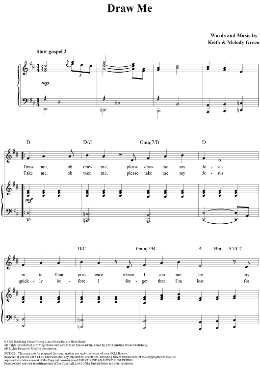 Digital Sheet Music for Draw Me by Keith Green, Melody Green scored for Piano/Vocal/Chords; id:115984