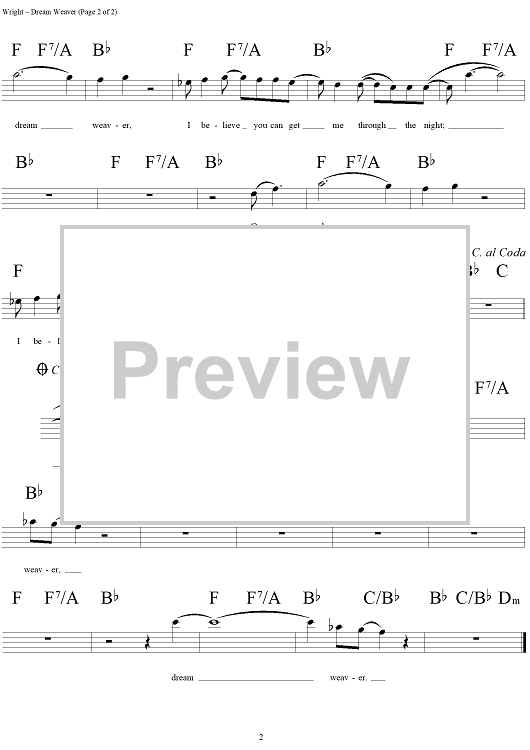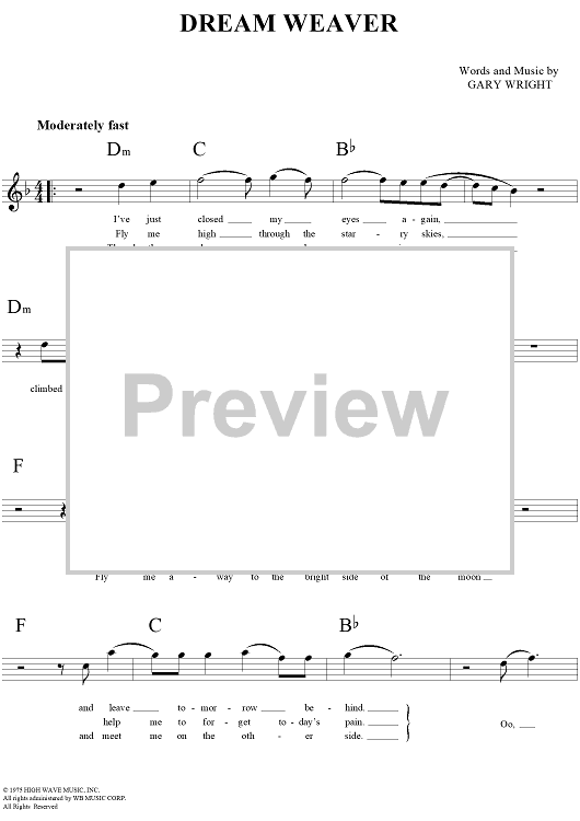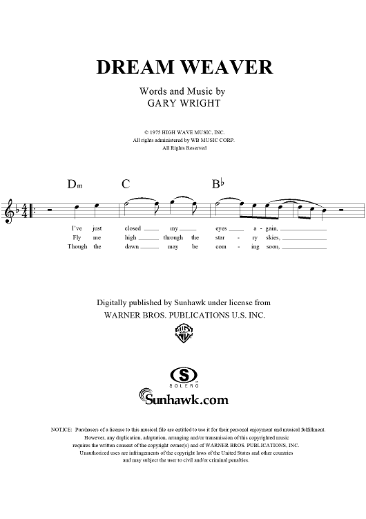 Digital Sheet Music for Dream Weaver by Gary Wright scored for Lead Sheet; id:120049