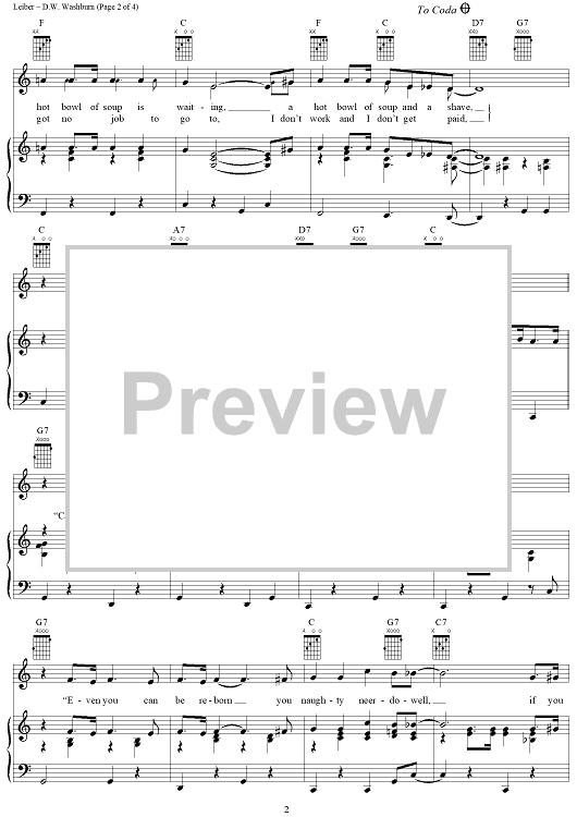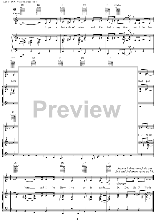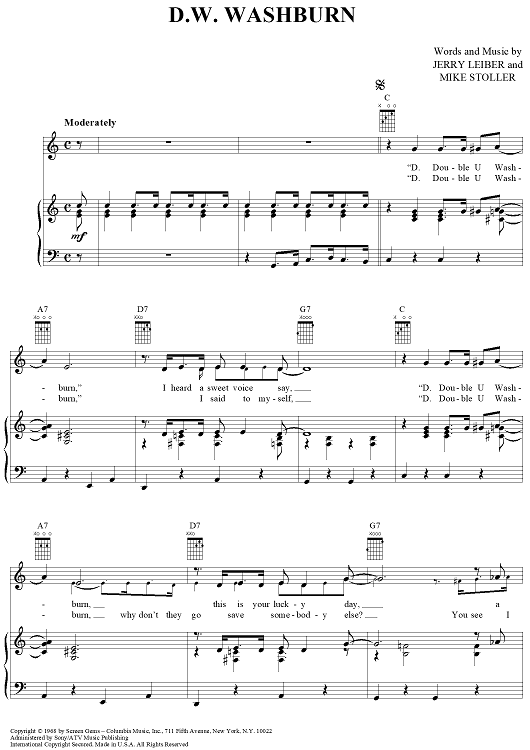 Digital Sheet Music for D.W. Washburn by Jerry Leiber, Mike Stoller, The Monkees scored for Piano/Vocal/Chords; id:365449