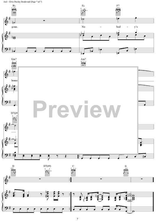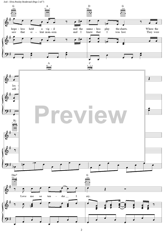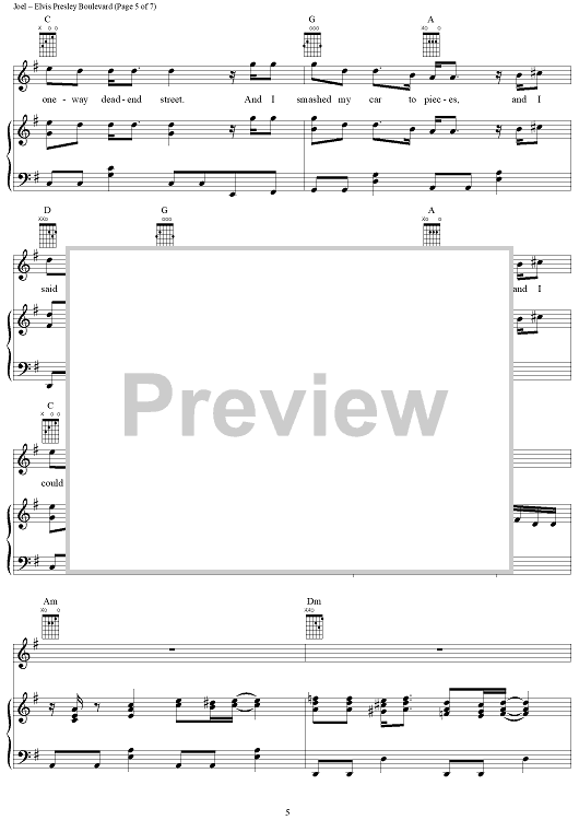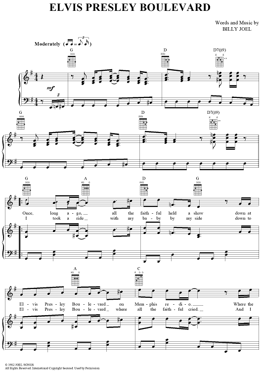 Digital Sheet Music for Elvis Presley Boulevard by Billy Joel scored for Piano/Vocal/Chords; id:403193
