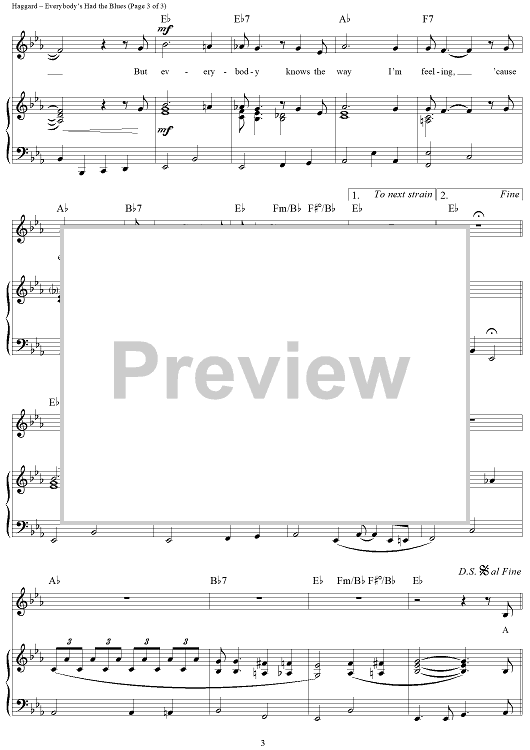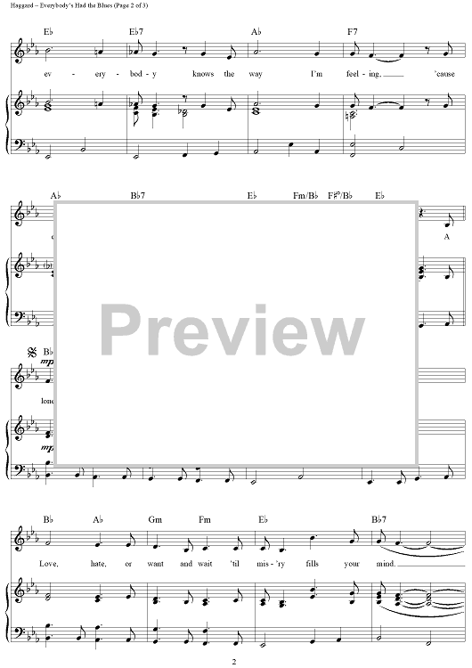 Digital Sheet Music for Everybody's Had the Blues by Merle Haggard scored for Piano/Vocal/Chords; id:362849