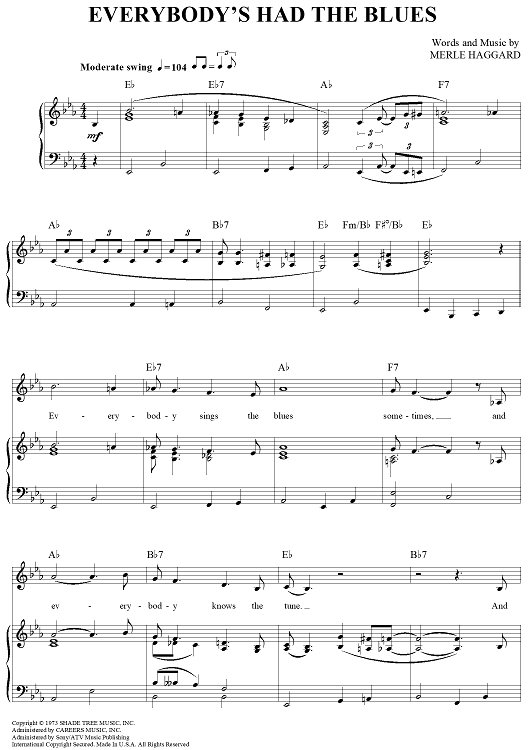 "Everybody's Had the Blues" Sheet Music by Merle Haggard