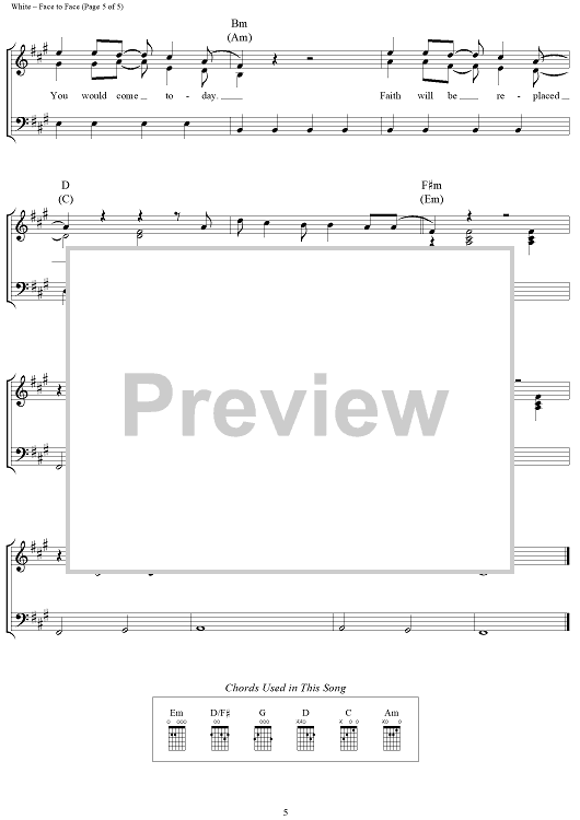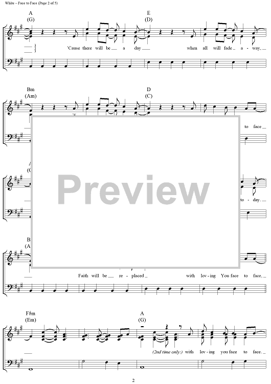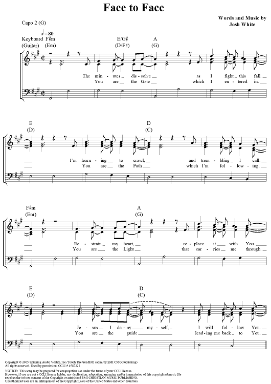 Digital Sheet Music for Face to Face by Josh White, Telecast scored for Piano/Vocal/Chords; id:320907