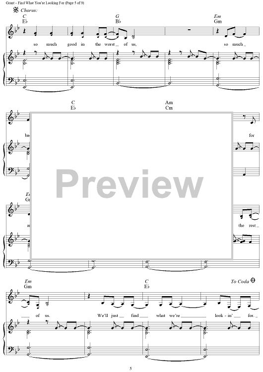 Digital Sheet Music for Find What You're Looking For by Mindy Smith, Amy Grant scored for Piano/Vocal/Chords; id:418641