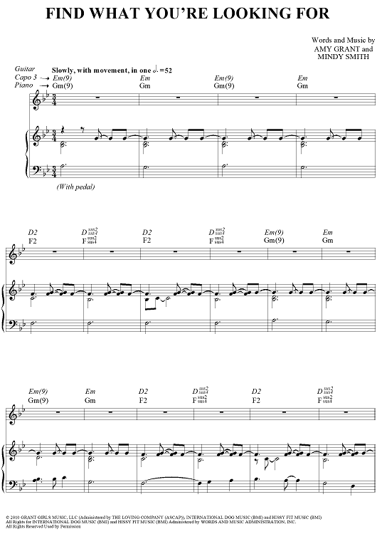 "Find What You're Looking For" Sheet Music by Amy Grant