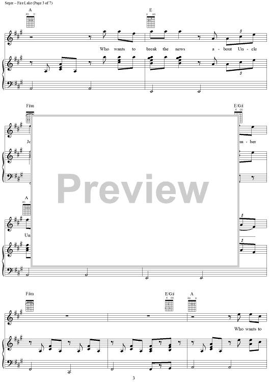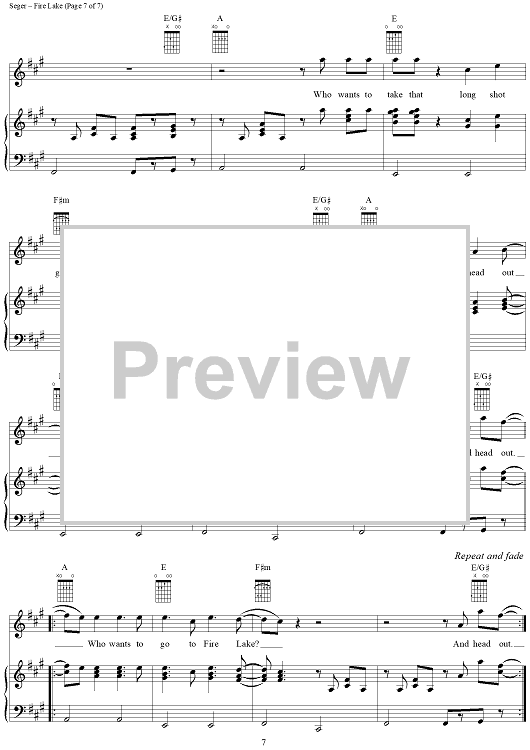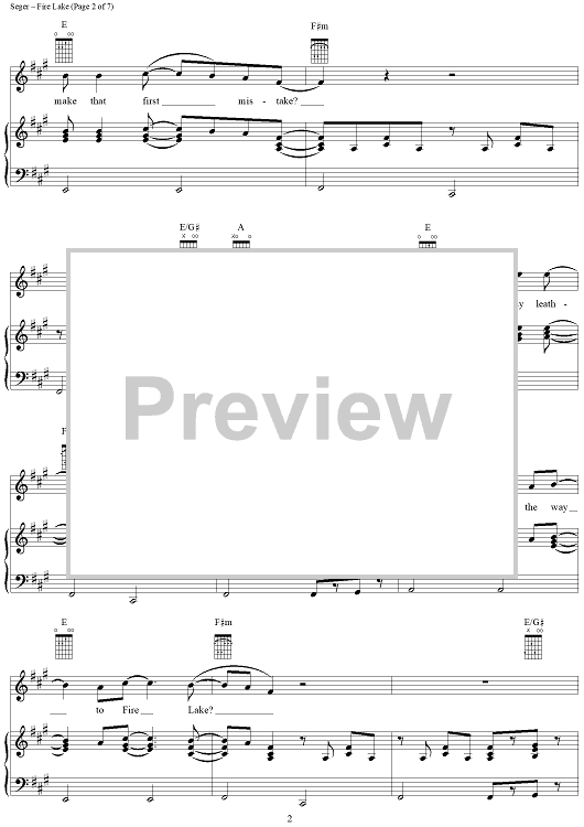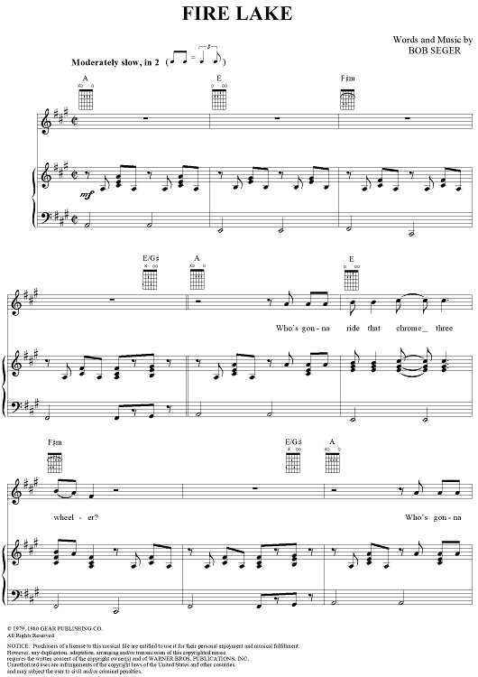 Digital Sheet Music for Fire Lake by Bob Seger scored for Piano/Vocal/Chords; id:116052