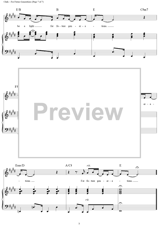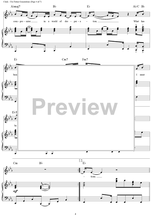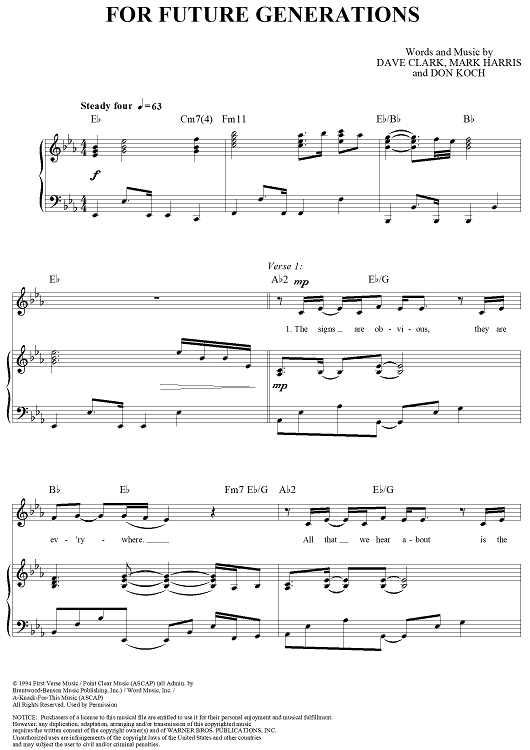Digital Sheet Music for For Future Generations by Don Koch, Mark Harris, Dave Clark, 4Him scored for Piano/Vocal/Chords; id:287104