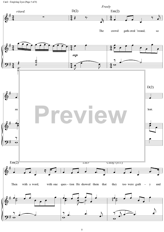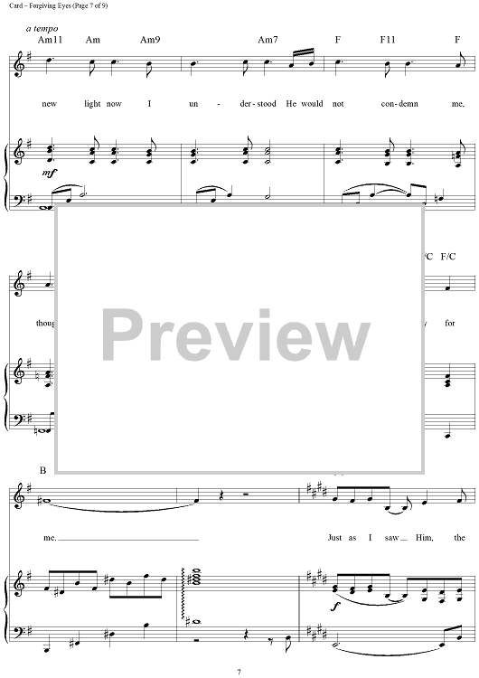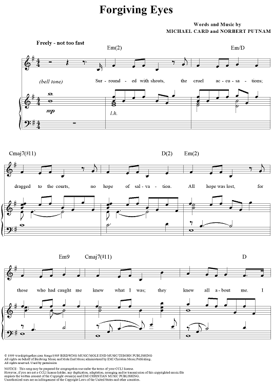 Digital Sheet Music for Forgiving Eyes by Michael Card, Norbert Putnam scored for Piano/Vocal/Chords; id:115987