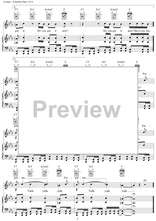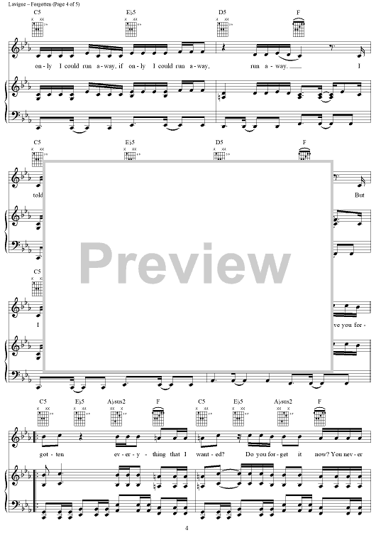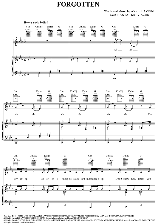 "Forgotten" Sheet Music by Avril Lavigne