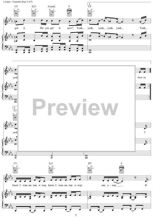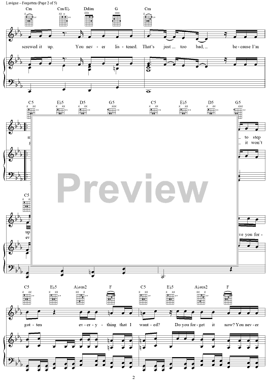 Digital Sheet Music for Forgotten by Avril Lavigne, Chantal Kreviazuk scored for Piano/Vocal/Chords; id:402942