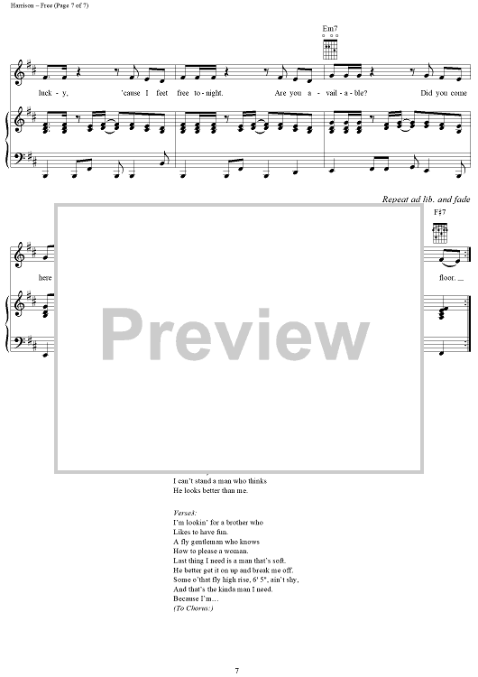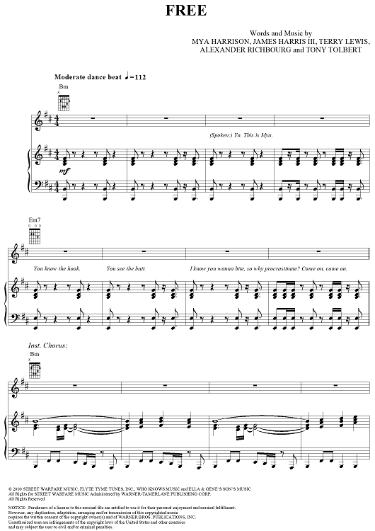 Digital Sheet Music for Free by Jimmy Jam, Terry Lewis, Tony Tolbert, Mya, Mya Harrison, Alex Richbourg scored for Piano/Vocal/Chords; id:285688