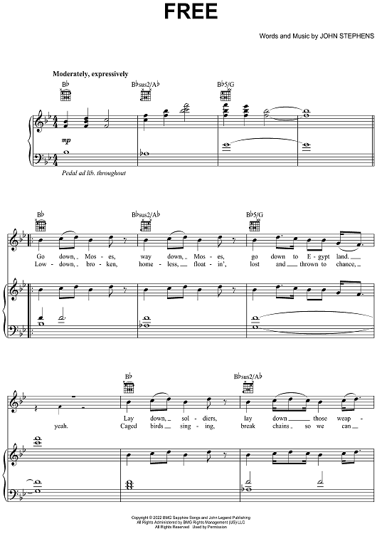 Digital Sheet Music for Free by John Legend scored for Piano/Vocal/Chords; id:497125