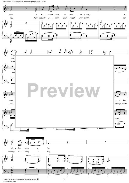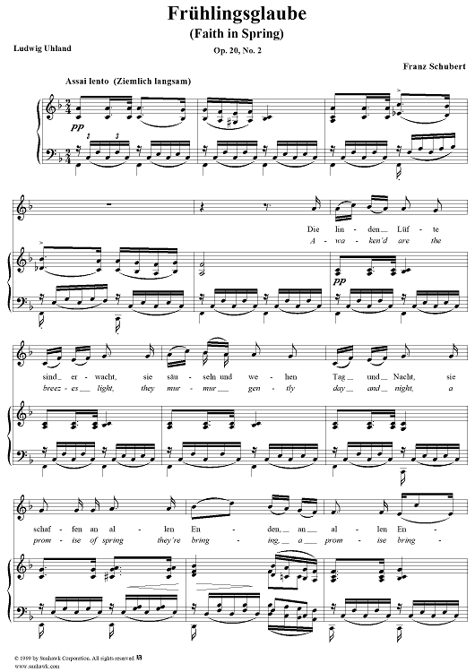 Digital Sheet Music for Frühlingsglaube by Ludwig Uhland, Franz Schubert scored for Voice/Piano; id:118083