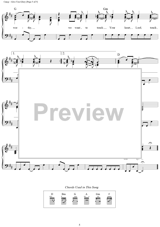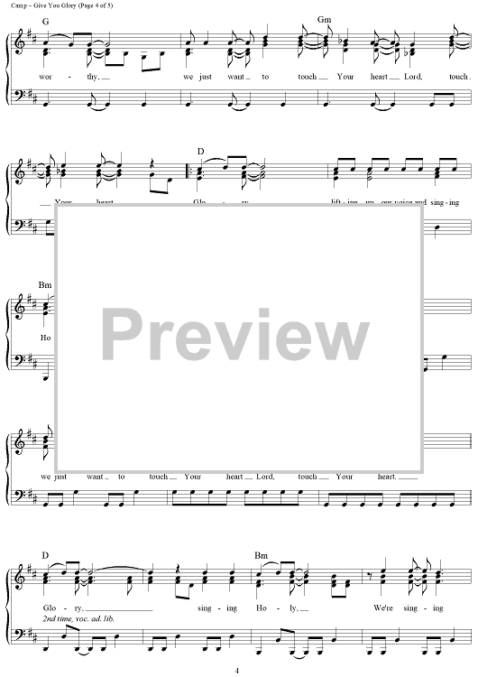 Digital Sheet Music for Give You Glory by Jeremy Camp scored for Piano/Vocal/Chords; id:360870