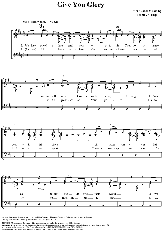 "Give You Glory" Sheet Music by Jeremy Camp