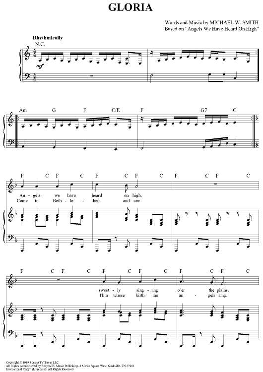 Digital Sheet Music for Gloria by Michael W. Smith scored for Piano/Vocal/Chords; id:366839