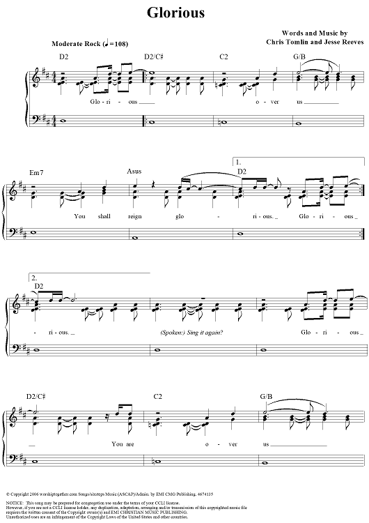 Digital Sheet Music for Glorious by Chris Tomlin, Christy Nockels, Jesse Reeves scored for Piano/Vocal/Chords; id:320287