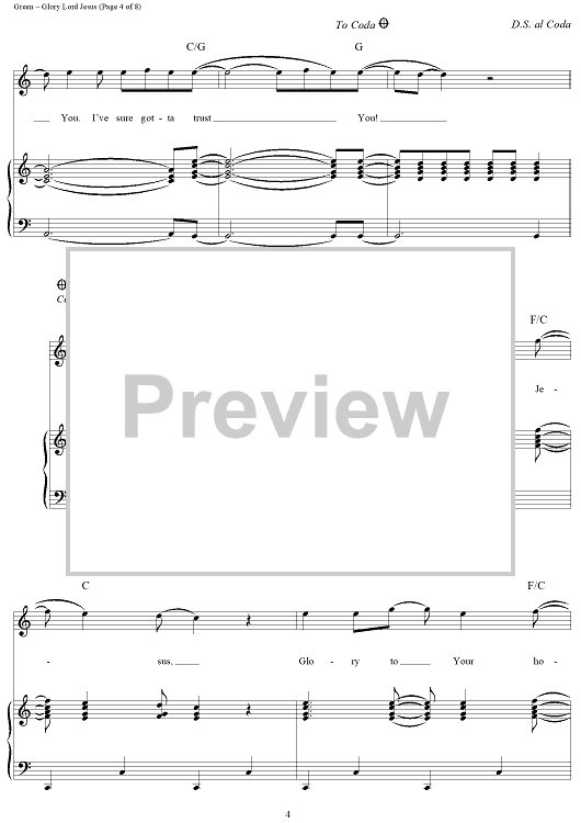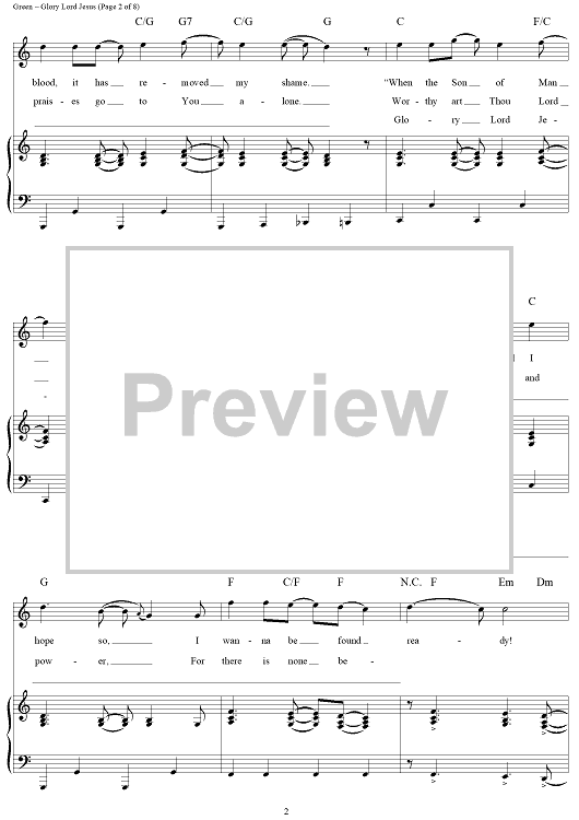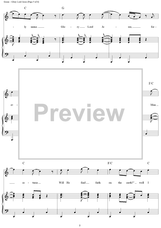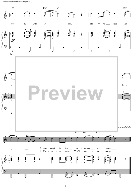 "Glory Lord Jesus" Sheet Music by Keith Gordon Green