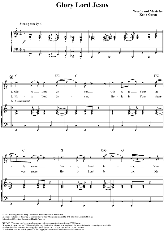 Digital Sheet Music for Glory Lord Jesus by Keith Green scored for Piano/Vocal/Chords; id:115989