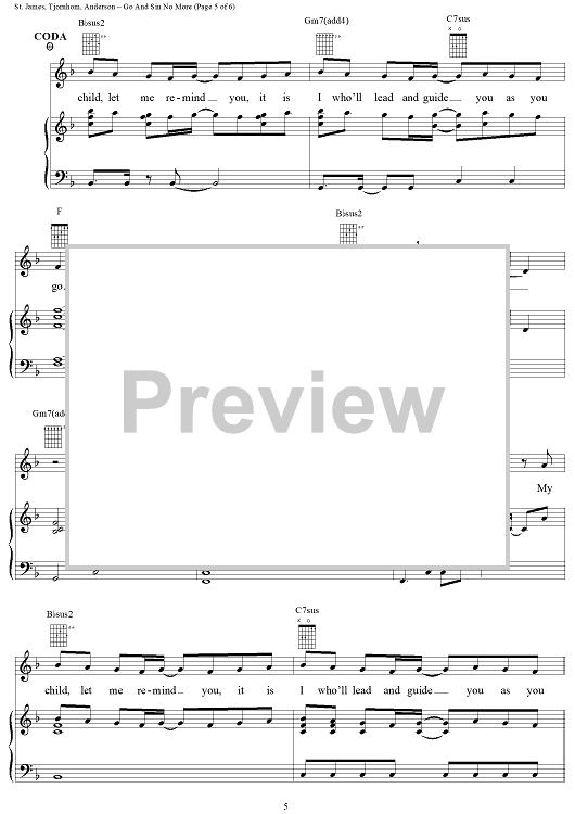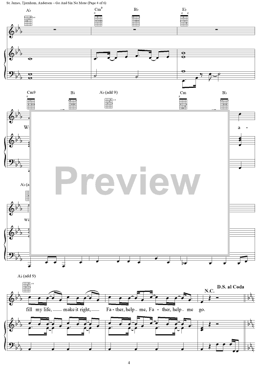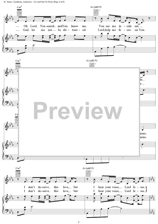 Digital Sheet Music for Go and Sin No More by Rebecca St. James, Tedd T, Michael Anderson scored for Piano/Vocal/Chords; id:95843