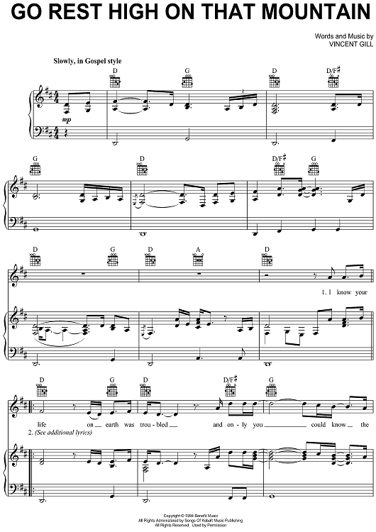 Digital Sheet Music for Go Rest High On That Mountain by Vince Gill scored for Piano/Vocal/Chords; id:509416