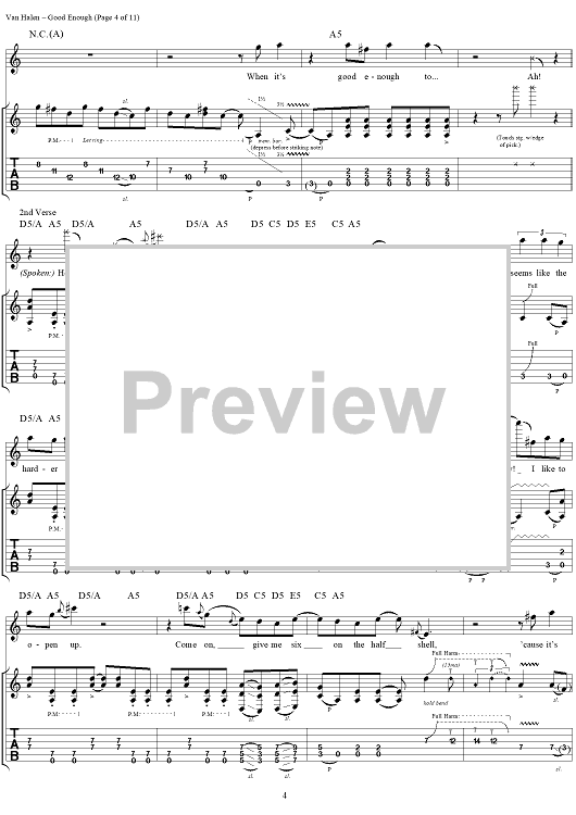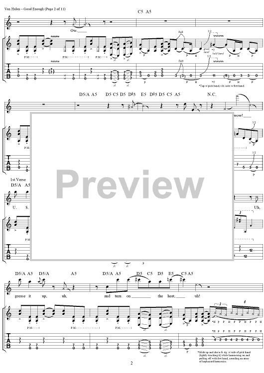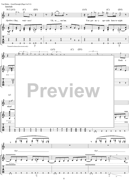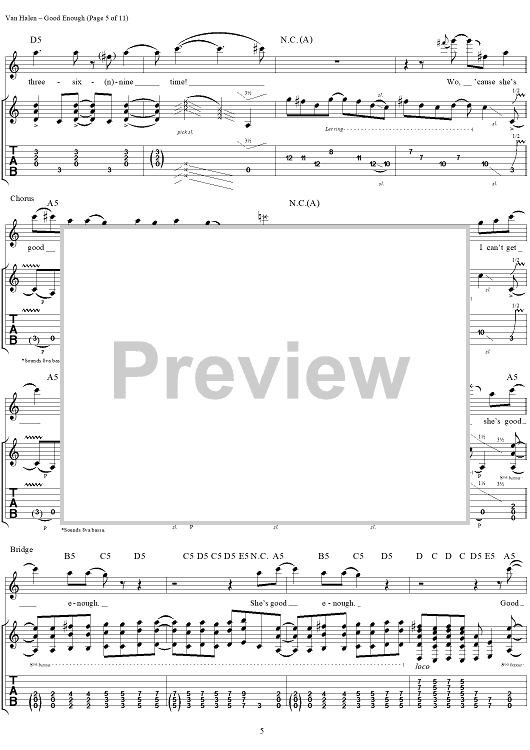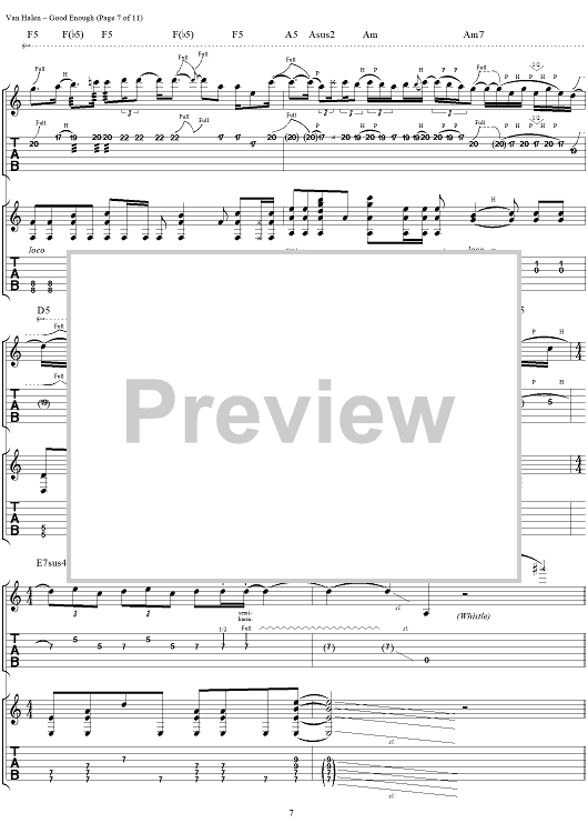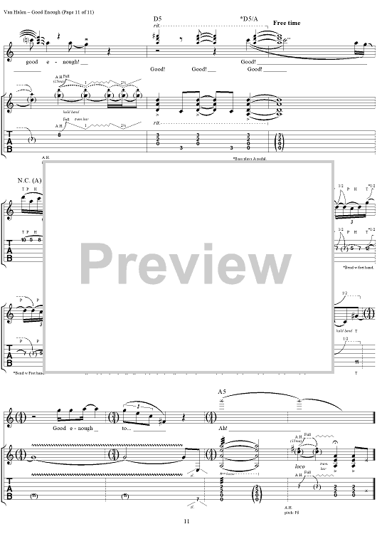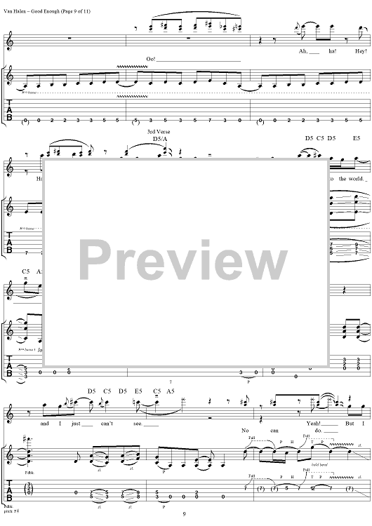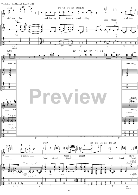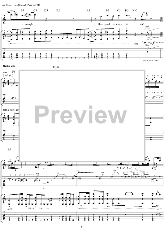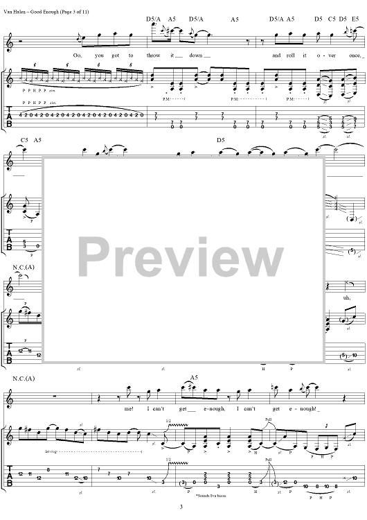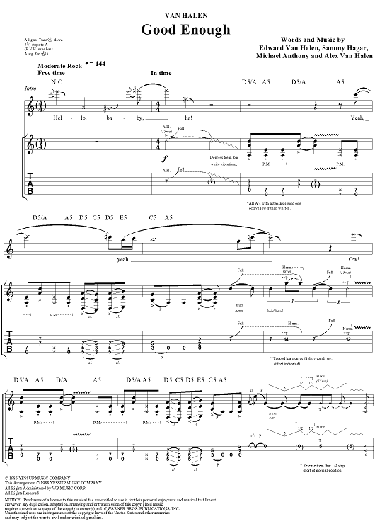 Digital Sheet Music for Good Enough by Eddie Van Halen, Sammy Hagar, Michael Anthony, Alex Van Halen, Van Halen scored for Guitar Tab/Vocal; id:111577